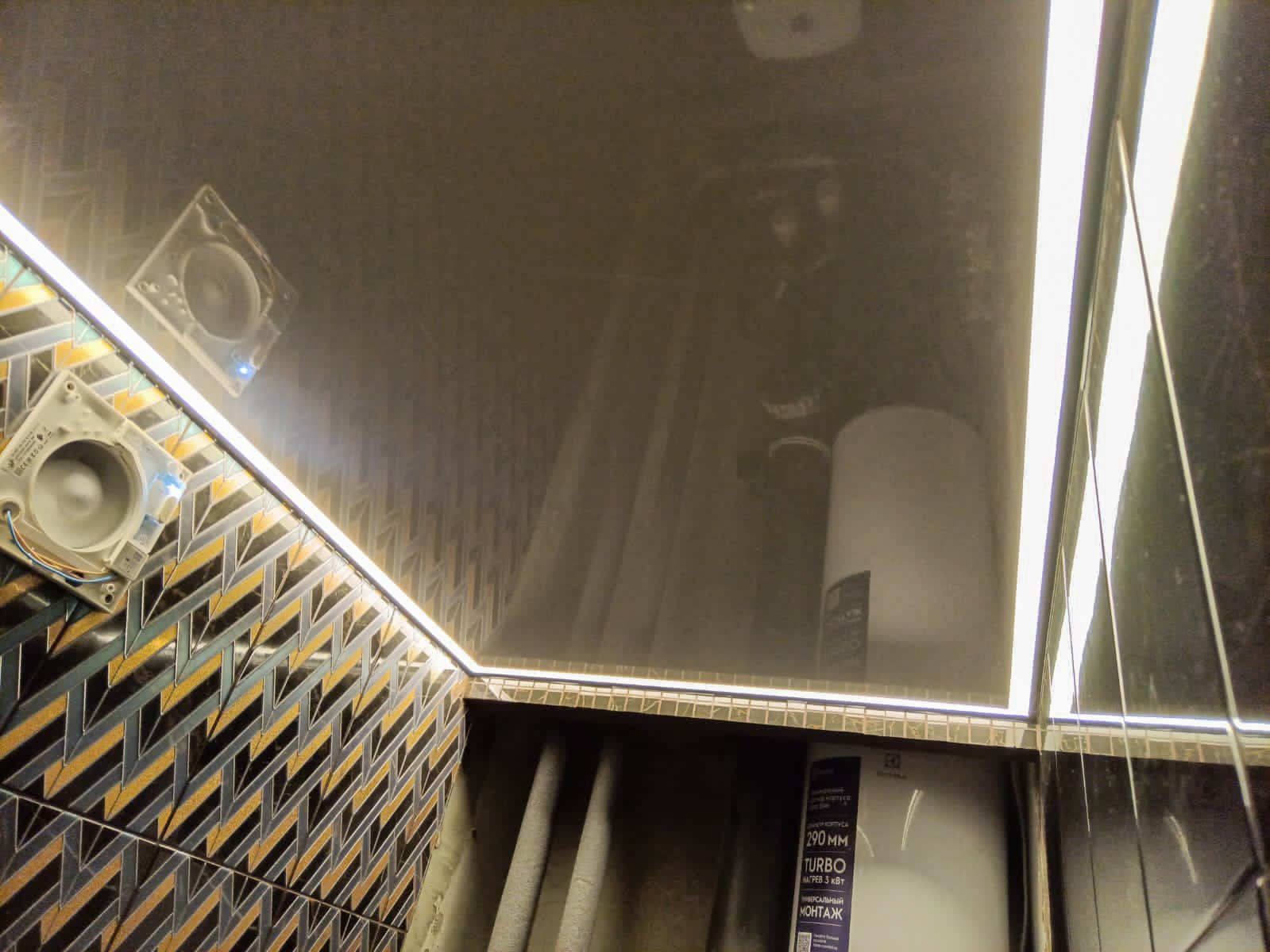 Этапы монтажа полотна со скрытой подсветкой: