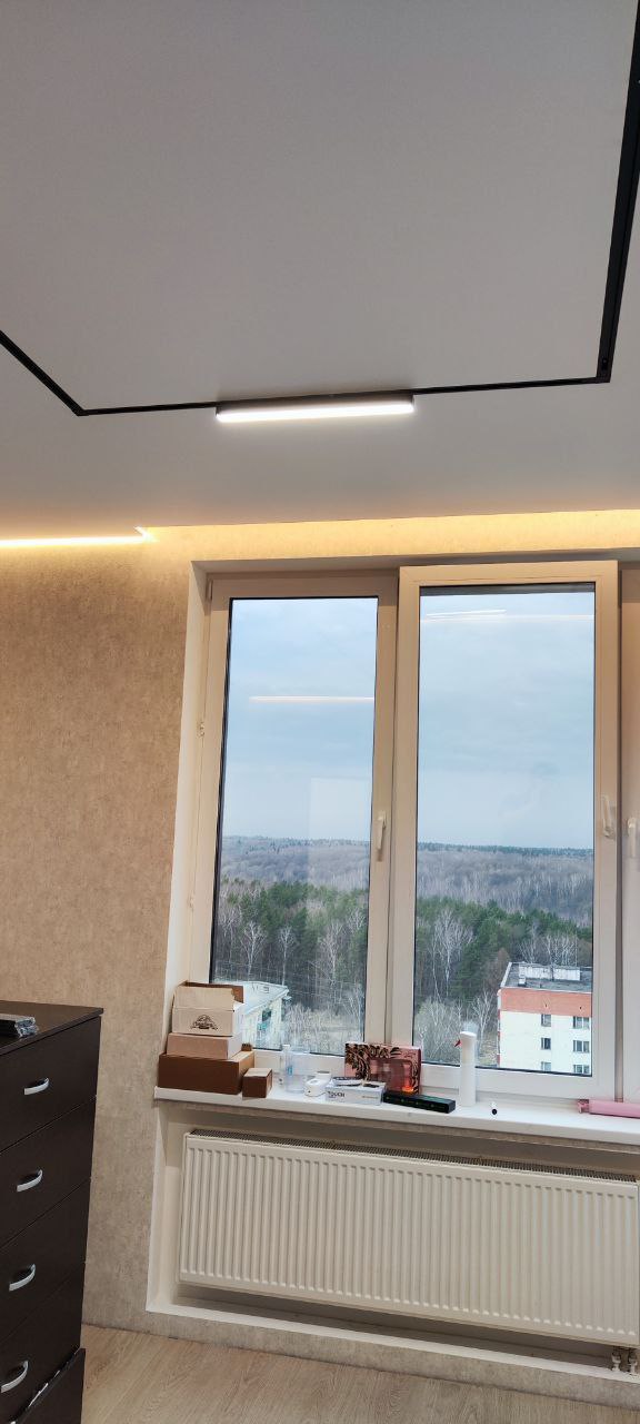 В квартире нужна была парящая конструкция с контурными потолками. «Седьмое небо» сделало все под ключ: от замера до установки. Учли особенности натяжного потолка, добавили подсветку по периметру. Комната преобразилась, световой потолок создает уют. Не жалеем о выборе!
